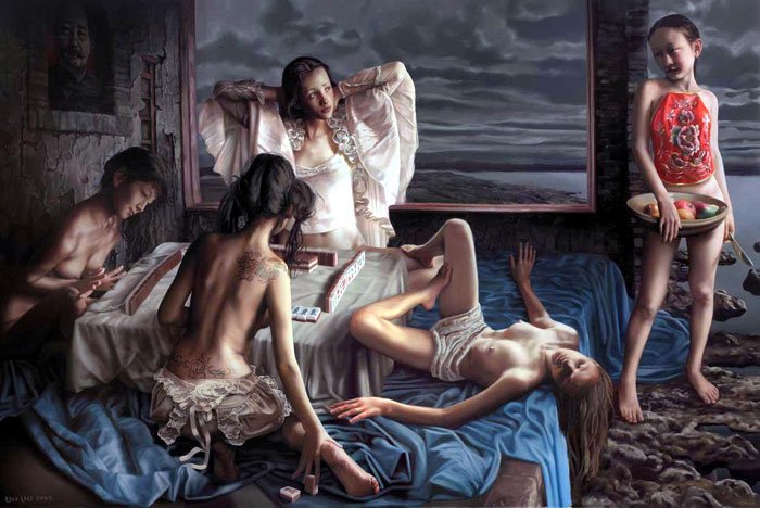 Liu Yi, un artiste basé à Toronto, exploite à fond, la sensualité féminine dans une équation de puissance entre les États-Unis, la Russie, la Chine, le Japon et Taiwan, où les filles par analogie avec les nations houe au mah-jong, tout en exprimant des niveaux de modestie qui représentent leurs positions respectives.